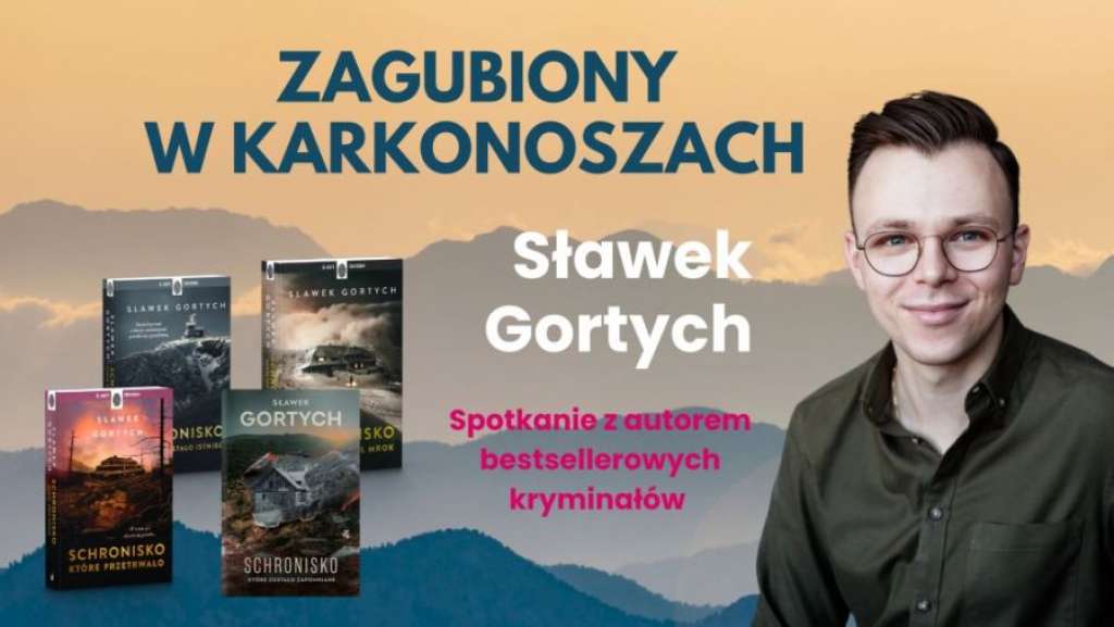 Wieczór uświetni spotkanie autorskie ze Sławkiem Gortychem, znanym jako "Zagubiony w Karkonoszach" i twórcą bloga o tej samej nazwie. Jest też autorem bestsellerowej Karkonoskiej Serii Kryminalnej, której akcja rozgrywa się w górach. Jego twórczość cieszy się uznaniem czytelników i krytyków – jest on kilkukrotnym laureatem plebiscytu Książka Roku organizowanego przez serwis lubimyczytac.pl. Ponadto jego trzy tomy Karkonoskiej Serii Kryminalnej zostały docenione tytułem Najlepszej Górskiej Książki Roku na Festiwalu Literatury Górskiej w Lądku-Zdroju w latach 2023 i 2024. Spotkanie będzie okazją, by posłuchać opowieści nie tylko o Ducha Gór, ale i o pasji do literatury i gór.