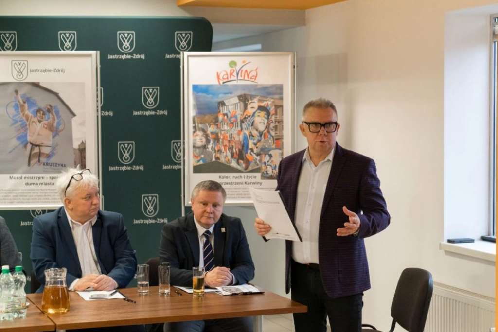 W Jastrzębiu-Zdroju odbyła się konferencja poświęcona realizacji przedsięwzięcia prowadzonego wspólnie z czeskimi miastami Karwina i Hawierzów. Chodzi o projekt MURAL.GO, który łączy sztukę, sport i lokalną tożsamość miast po obu stronach polsko-czeskiej granicy. W spotkaniu uczestniczyli przedstawiciele władz samorządowych miast partnerskich, w tym prezydent Jastrzębia-Zdroju Michał Urgoł, zastępca prezydenta Karwiny Andrzej Bizoń, zastępca prezydenta Hawierzowa Bogusław Niemiec i przewodniczący Rady Miasta Jastrzębie-Zdrój Piotr Szereda.