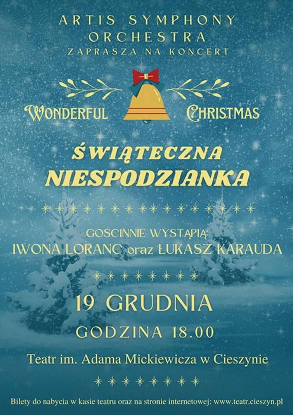 19 grudnia o godz. 18:00 w Teatrze im. Adama Mickiewicza przy pl. Teatralnym 1 odbędzie się koncert, którego program pozostanie dla publiczności niespodzianką aż do rozpoczęcia wydarzenia. Organizatorzy zapowiadają, że wśród przygotowanych utworów znajdzie się zarówno muzyka świąteczna, jak i kompozycje niezwiązane z tematyką bożonarodzeniową, dzięki czemu każdy słuchacz będzie mógł odnaleźć w programie coś dla siebie.