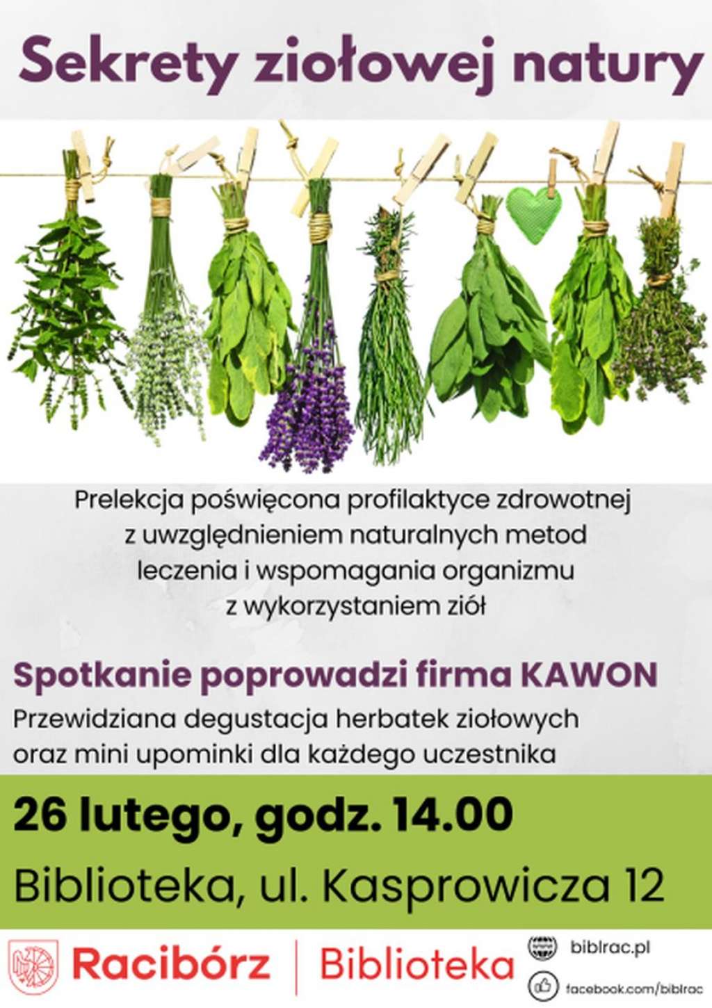 Mieszkańcy Raciborza będą mieli okazję, by zgłębić tajniki medycyny naturalnej i dowiedzieć się, jak skutecznie wykorzystywać dary natury w codziennym życiu. Biblioteka przy ul. Kasprowicza 12 zaprasza wszystkich zainteresowanych na prelekcję połączoną z elementami warsztatowymi pt. „Sekrety ziołowej natury”. Wydarzenie odbędzie się 26 lutego o godz. 14:00, a poprowadzą je eksperci z firmy KAWON.