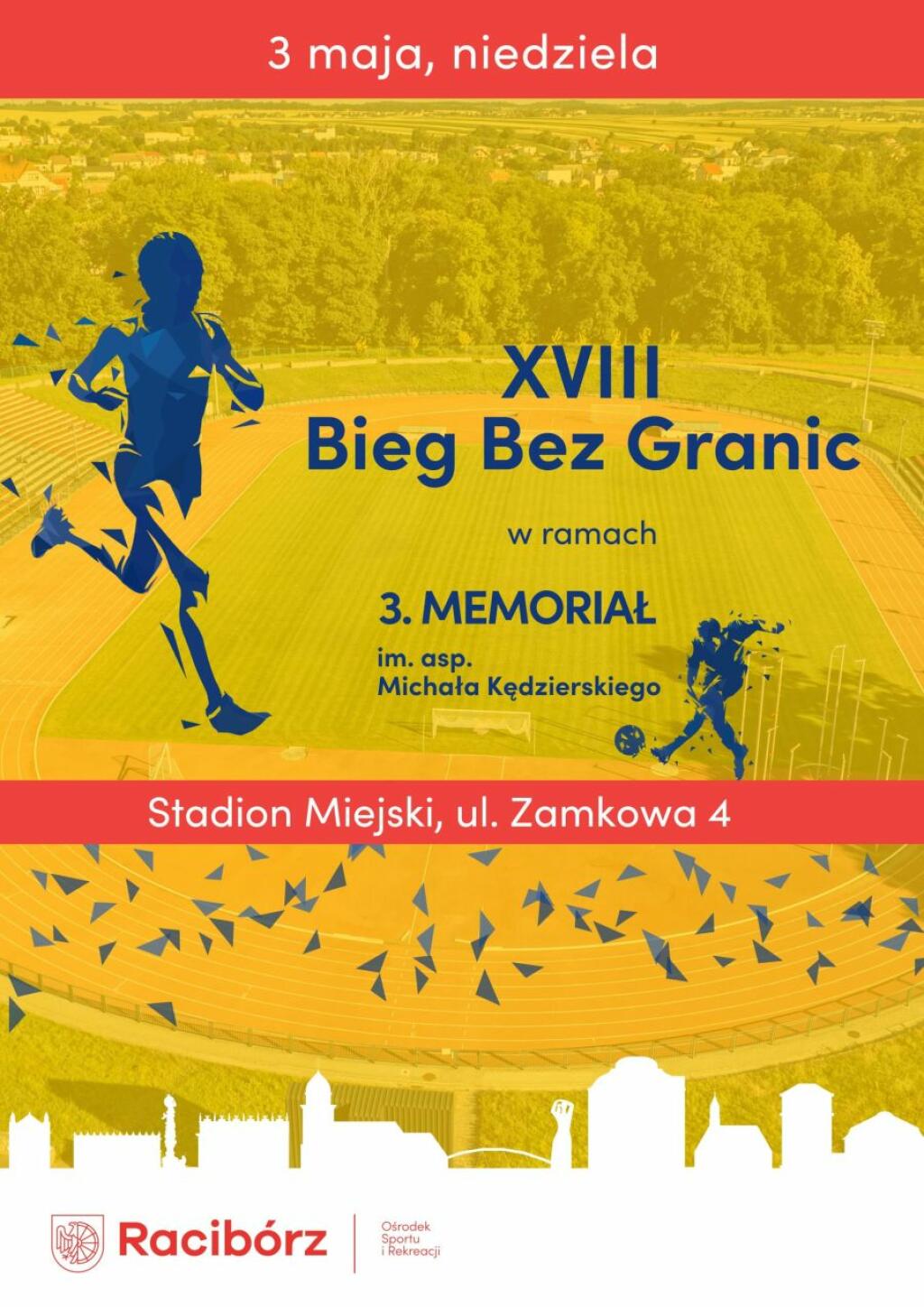 3 maja odbędzie się 18. edycja Biegu Bez Granic w Raciborzu organizowana w ramach Memoriału im. Michała Kędzierskiego. Zostaną przygotowane trasy dostosowane do różnych poziomów zaawansowania i wieku uczestników. Wszystkie biegi wystartują ze stadionu przy ul. Zamkowej 4, a ich trasy zostaną poprowadzone ulicami w centrum miasta.