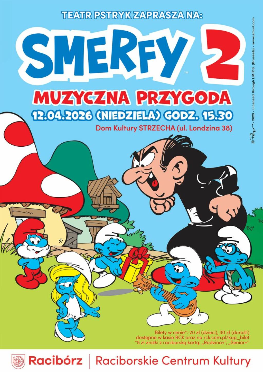Na scenę Domu Kultury Strzecha w Raciborzu powrócą bohaterowie znani z popularnej bajkowej serii. W niedzielę 12 kwietnia o godz. 15:30 będzie można zobaczyć spektakl „Smerfy 2 – Muzyczna przygoda” przygotowany przez Raciborskie Centrum Kultury. Przedstawienie w wykonaniu Teatru Pstryk stanowi kontynuację historii, która wcześniej spotkała się z dużym zainteresowaniem publiczności.