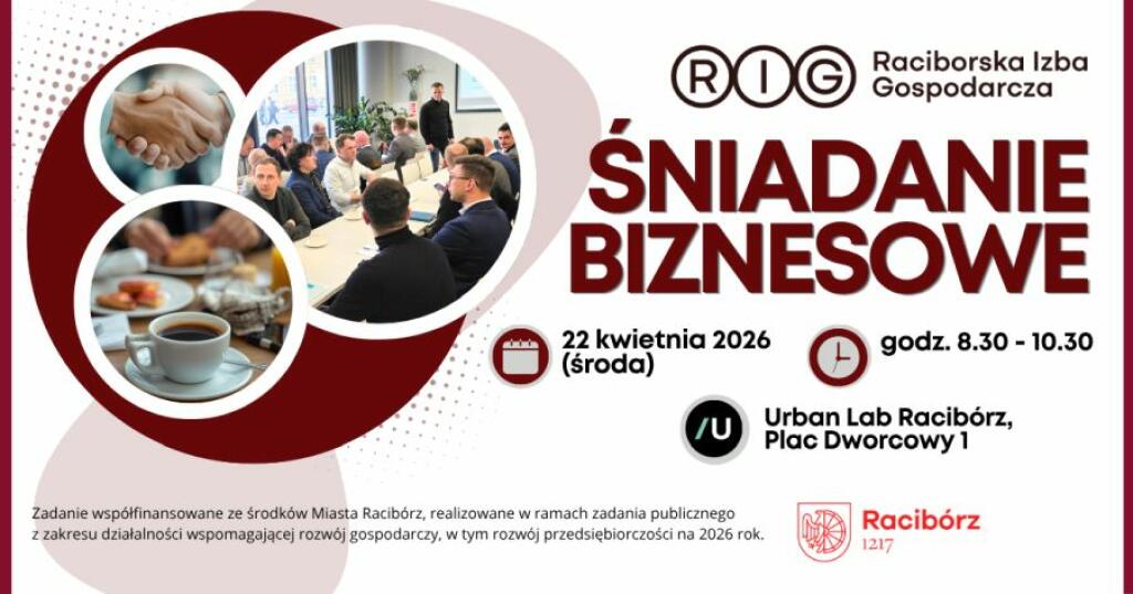 Udział w spotkaniu jest bezpłatny, jednak obowiązuje wcześniejsza rejestracja: https://app.evenea.pl/event/sniadanie-biznesowe-raciborz.
